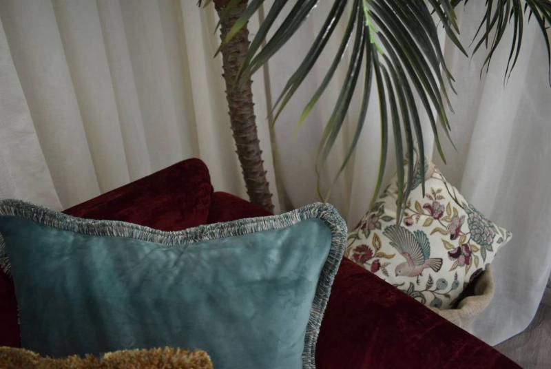 πάσης φύσεως καλύμματα επίπλων, πλενόμενα σαλόνια, διακοσμητικά παντός τύπου μαξιλάρια εσωτερικού αλλά και εξωτερικού χώρου. Μαξιλάρια καναπέδων διακοσμητικών μπαμπού, φερ φαρζέ - ύπνου. |